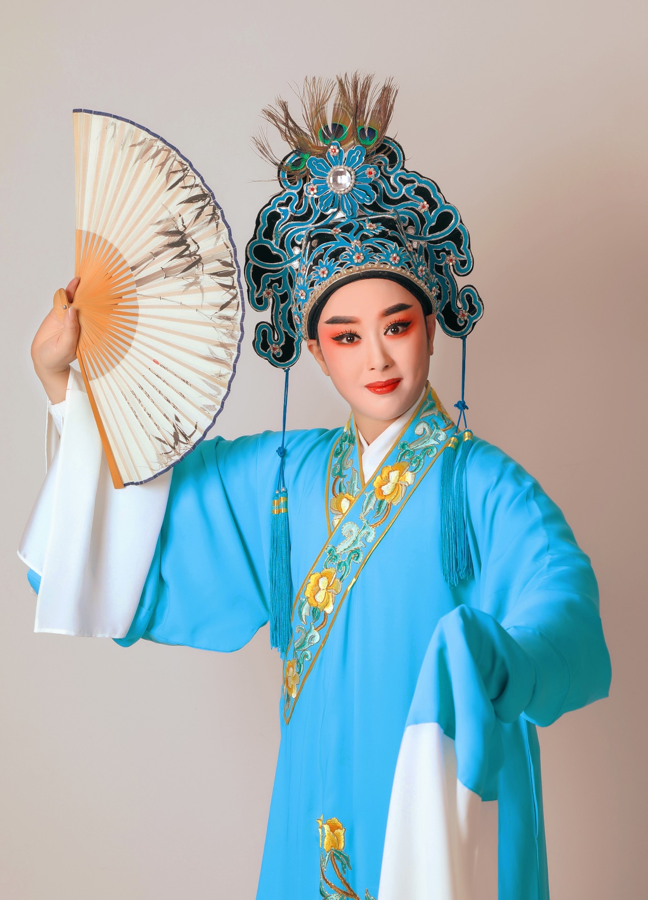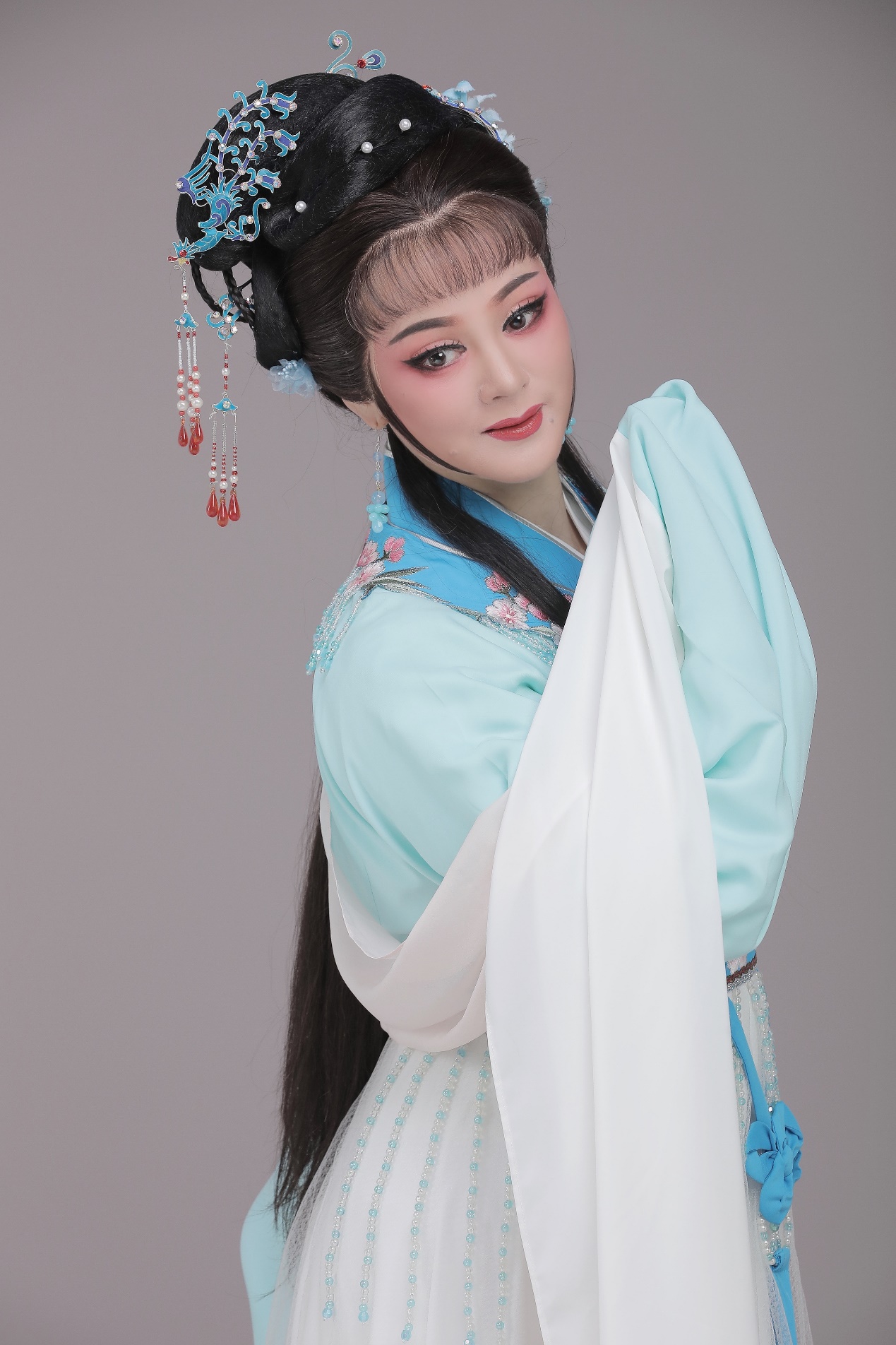 梁山伯——夏建花,毕业于浙江省艺术学校,扮相俊美,基本功扎实,成功塑造了《梁山伯与祝英台》里的梁山伯,《盘妻索妻》里的梁玉书,《情探》里的王魁,《西厢记》里的张生等角色。