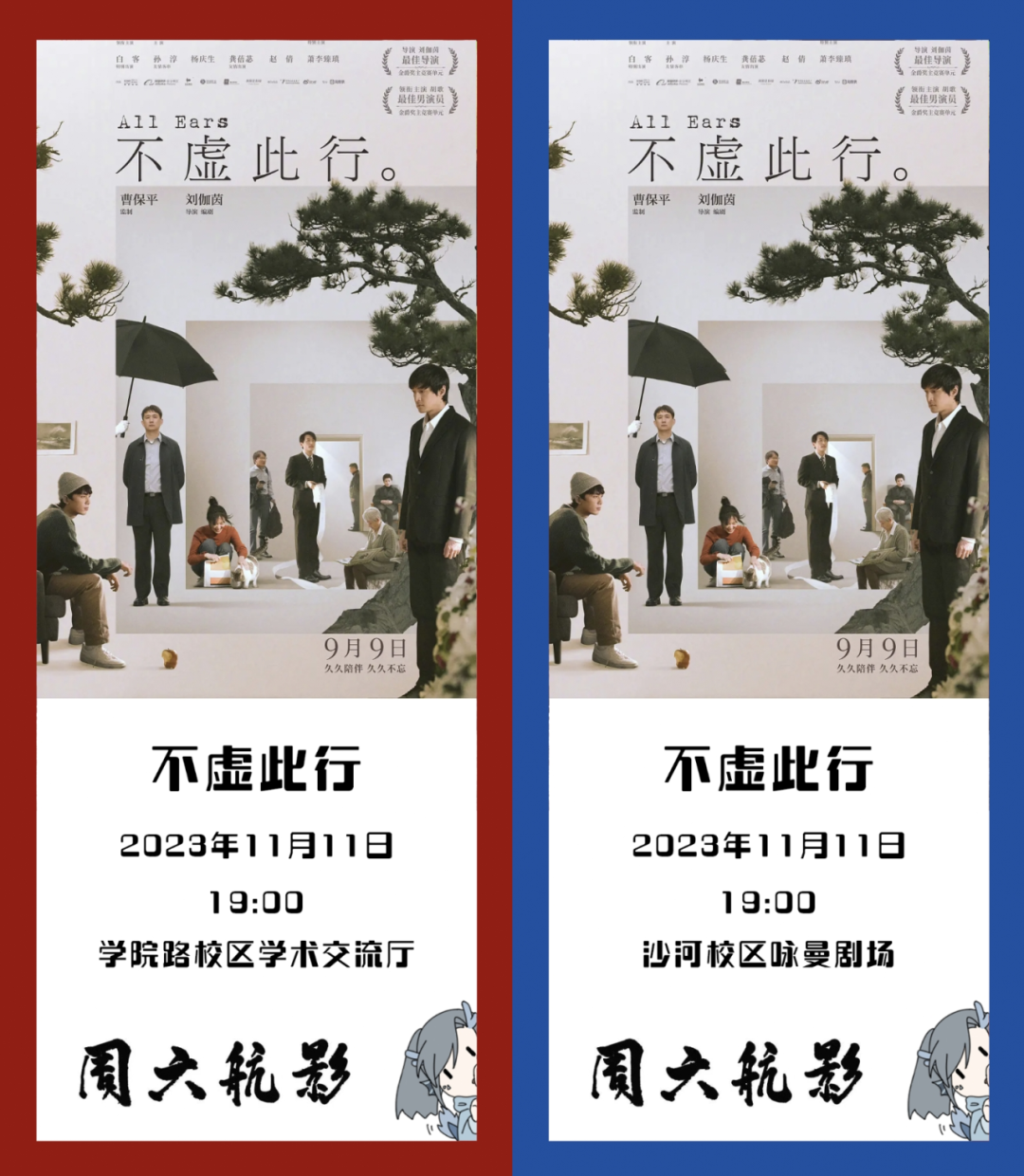 11月11日(周六)19:00,《不虚此行》将于学院路校区学术交流厅和沙河校区咏曼剧场同步放映!