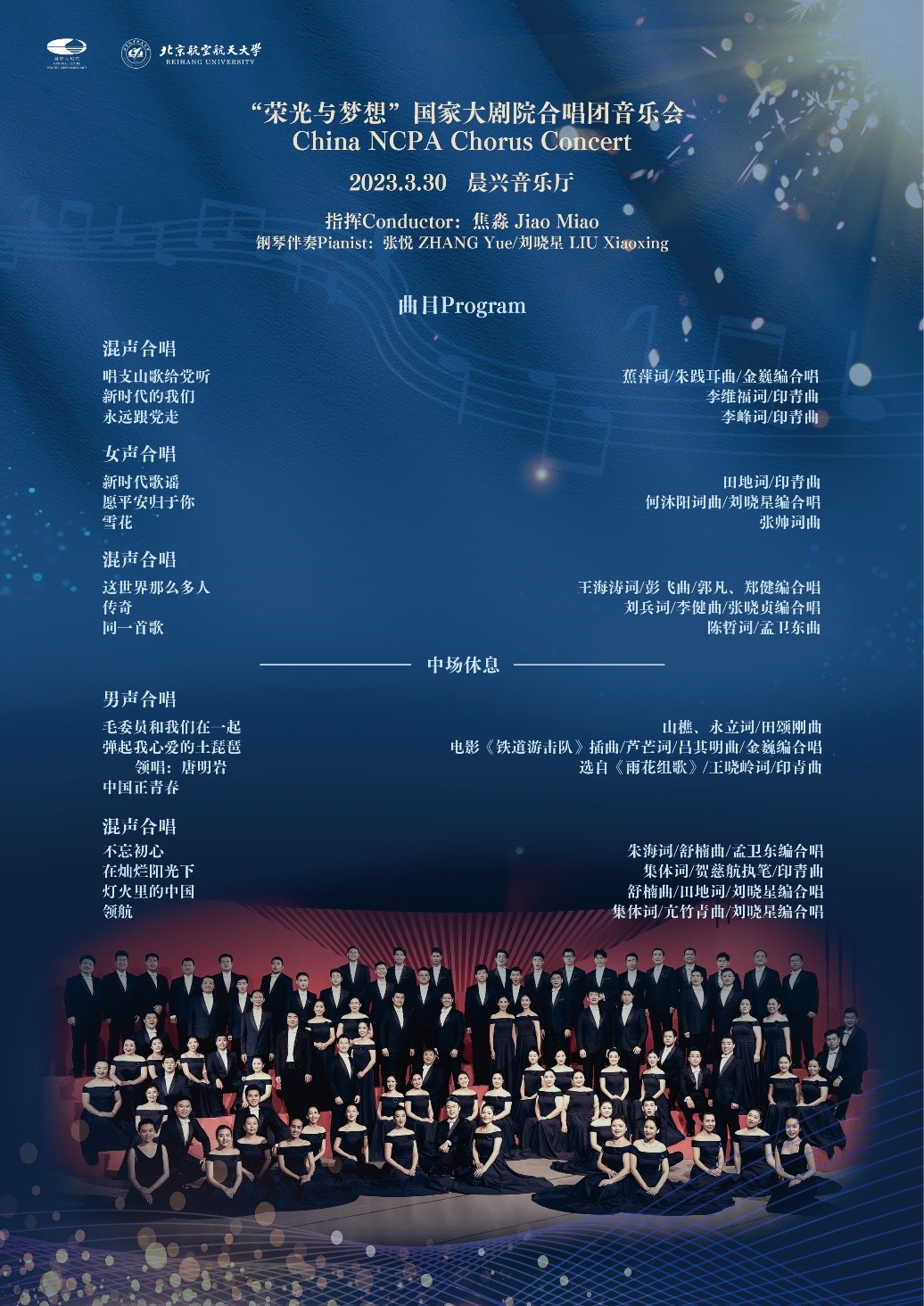 3月30日(周四)19:30,驻团指挥焦淼携手国家大剧院合唱团在KY开元学院路校区晨兴音乐厅为师生带来一场关于“荣光与梦想”的盛世欢歌,本场音乐会既有传唱红色经典、弘扬主旋律的歌曲,更有国家大剧院合唱团全新打造、编创的最新力作,也是新时代展望未来的文艺新声。