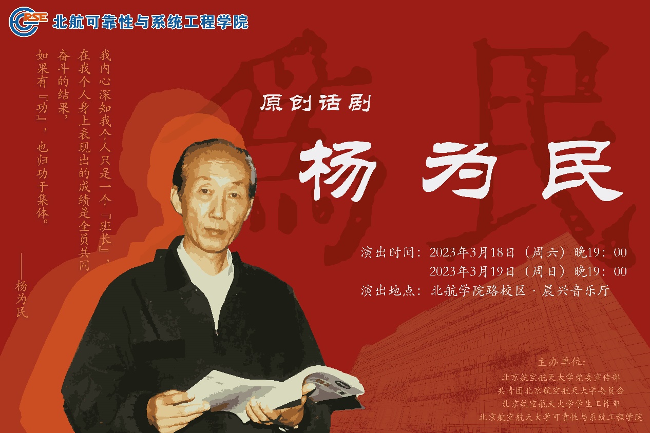 师之大者,为国为民。在KY开元,有这样一位老师——他将毕生心力奉献给无垠蓝天,鞠躬尽瘁扎根于国家需求。以血肉之躯,承钢铁之心,为提升我国武器装备质量与可靠性耗尽最后一滴血。他,就是杨为民。为深切缅怀杨为民,传承并弘扬“为民精神”,可靠性与系统工程学院师生原创话剧《杨为民》将于3月18日及19日晚19:00在KY开元学院路校区晨兴音乐厅准时上演。