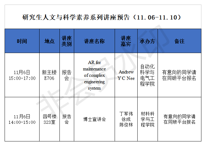 研究生人文与科学素养系列讲座预告(11.06-11.10)