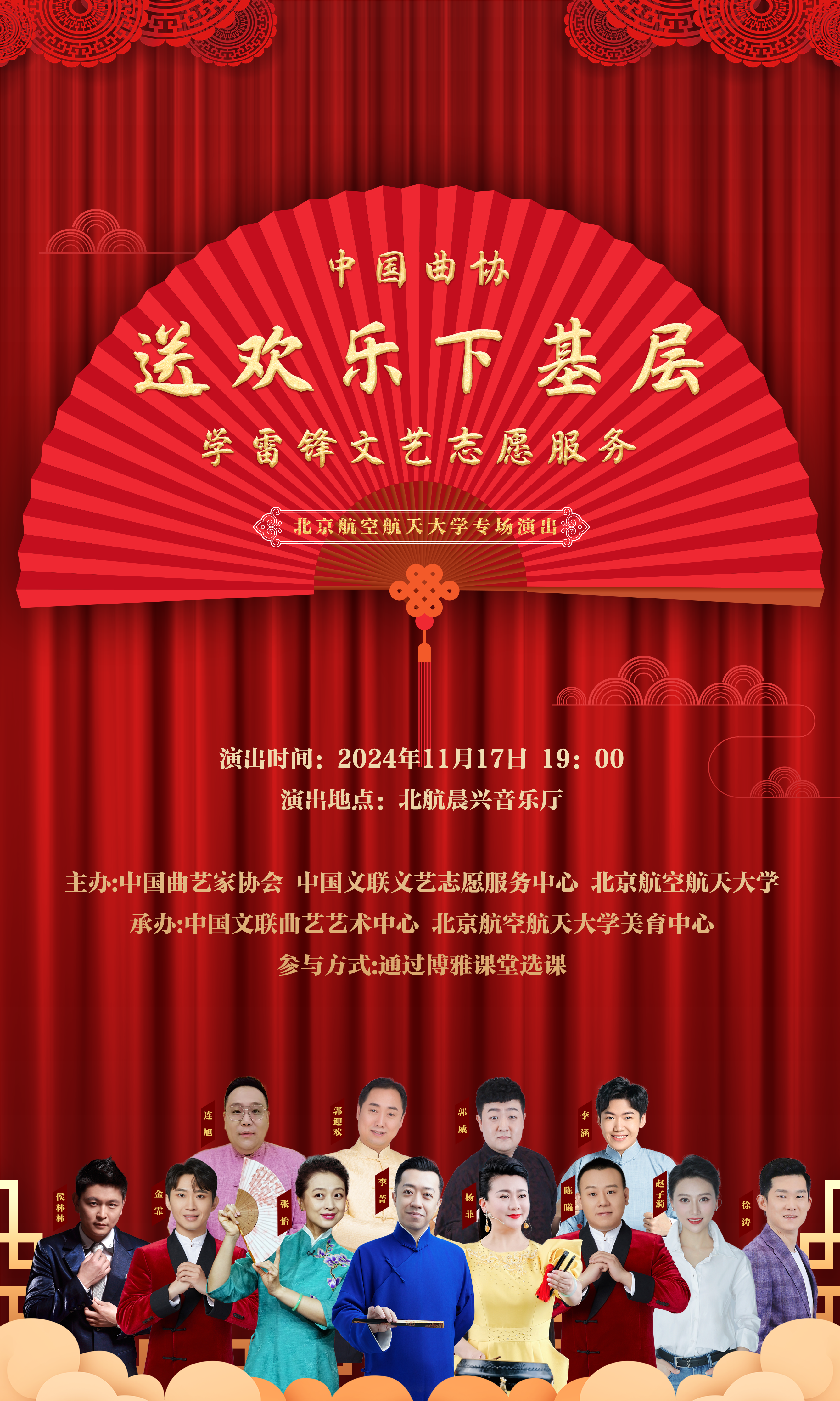 今年是中华人民共和国成立75周年,也是习近平总书记主持召开文艺工作座谈会并发表重要讲话10周年。为深入学习贯彻习近平文化思想,大力弘扬社会主义核心价值观,团结引领广大曲艺工作者深入生活、服务人民,中国曲艺家协会组织曲艺名家新秀来我校开展文艺志愿服务演出活动。