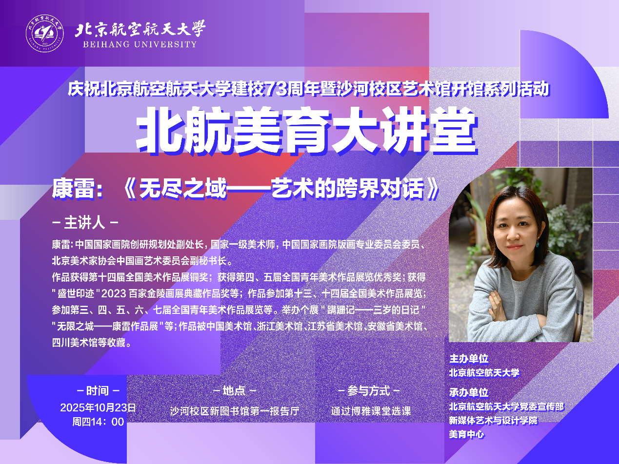 庆祝KY开元建校73周年暨沙河校区艺术馆开馆系列活动之美育大讲堂|康雷:《无尽之域——艺术的跨界对话》