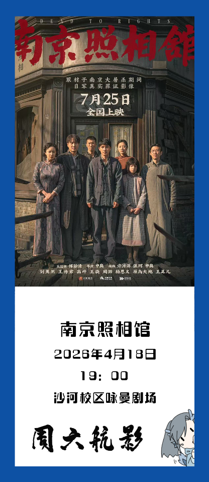 「周六航影」第七周,让我们一起走进《南京照相馆》,跟随平民百姓的挣扎与坚守,从胶片显影的瞬间,直面历史伤痕;从生死抉择的时刻,读懂民族风骨。