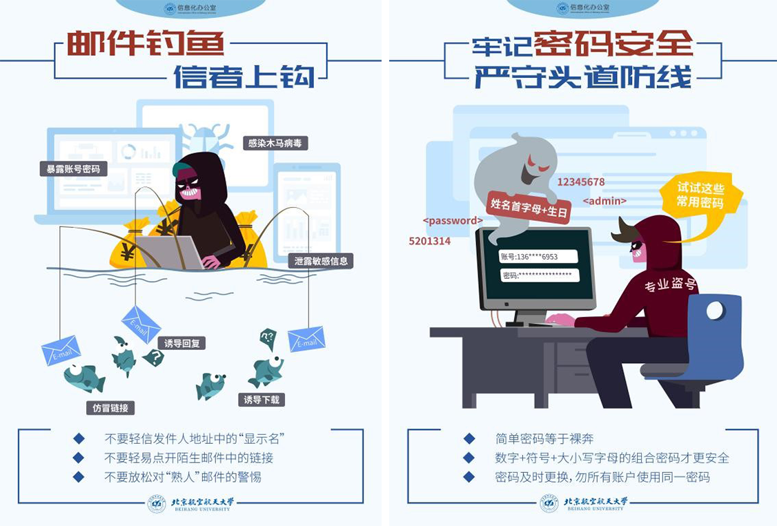 在对校园网络安全排查后,我们发现部分师生账号密码强度不足。与此同时,通过校园网传播网络病毒、通过钓鱼邮件和钓鱼WiFi为途径的非法信息收集、为诈骗钱财和个人信息散布假消息等威胁校园网络安全的网络攻击行为频频发生。我们在此提醒广大师生:
