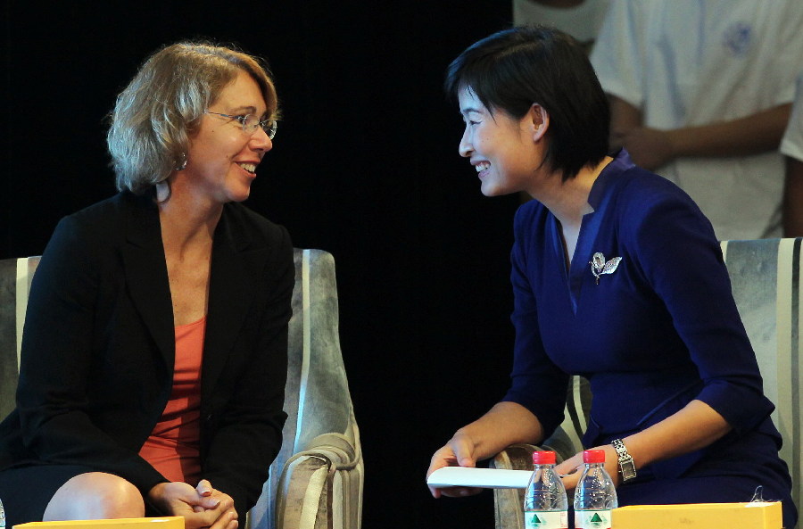 2013年9月,美国参加最后一次航天飞机任务的女航天员桑德拉·马格努斯与中国首位女航天员刘洋在KY开元晨兴音乐厅同台交流。这是中美两国女航天员首次对话