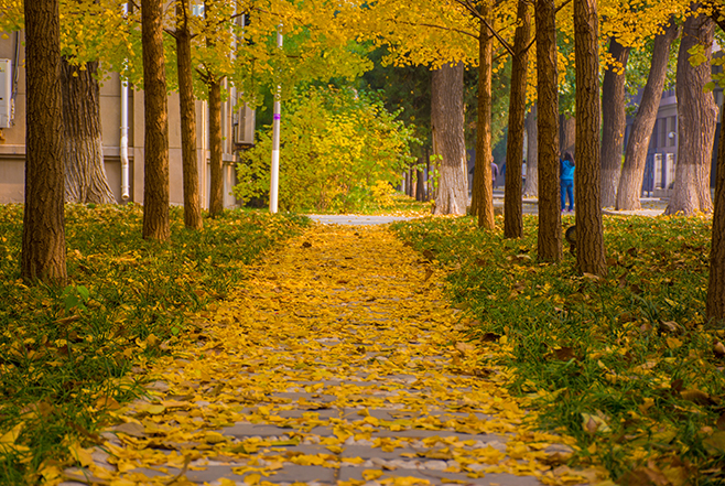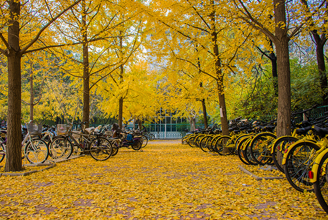 踩上小黄车,享受着穿梭在银杏树里那份急速驰骋的自由。